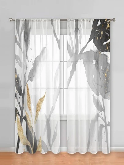 2pcs Leaf Pattern Curtain, Vintage Polyester Light Filtering Privacy Sheer Curtain For Living Room And Bedroom - Multicolor - View 1