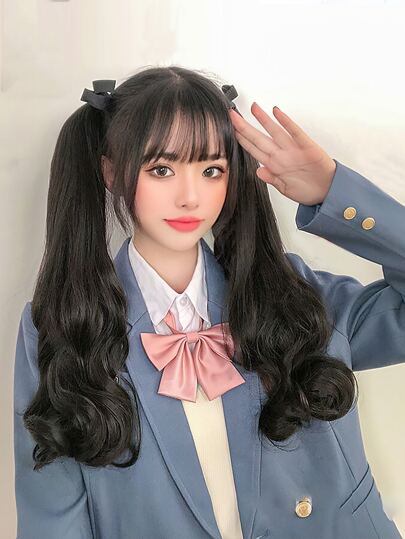 2pcs Long Body Wave Ponytail Synthetic Hair Extension - Black - View 1
