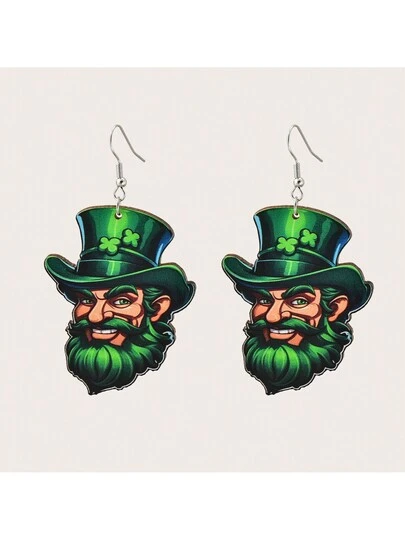 2pcs New Fashion St. Patrick'S Day Theme Irish Party Holiday Wooden Style Women'S Earrings - 3 - View 1