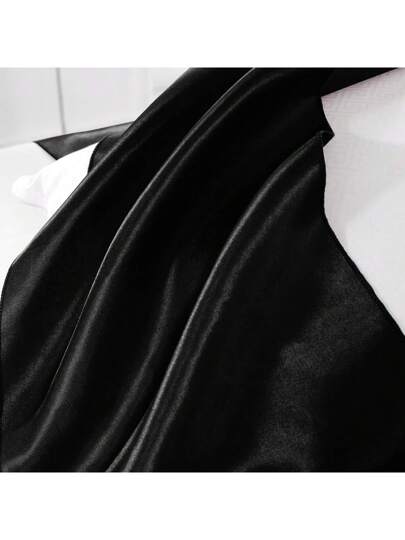 2pcs Rectangular Smooth Satin Silk Table Runner, Suitable For Wedding, Party, Birthday, Restaurant, Picnic, Garden Party Table Centerpiece Decor - Black - View 8