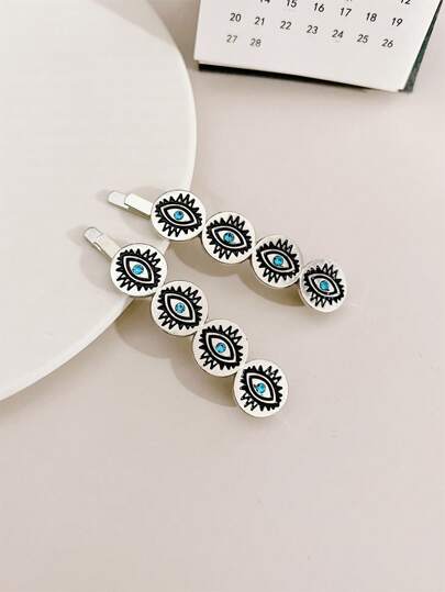 2pcs Retro Dark Gothic Evil Eye Hair Clips, Unique Punk Design Hair Accessories - Multicolor - View 1