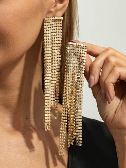 2pcs/Set Bohemian Geometric Sequin Tassel Earrings, Luxurious & Elegant For Daily Casual, Party, Couple Date, Women's Holiday Versatile Jewelry Gift - Earring - View 1