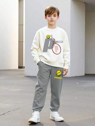 2pcs/Set Boys' Baseball Print Long Sleeve Top And Drawstring Pants Casual Sports Sweatshirt And Sweatpants Set, Spring/Autumn/Winter - Grey - View 1