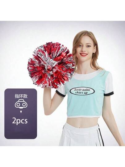 2pcs/Set Colorful Cheerleading Pom Poms, Thick & Dense, Clip-On Style, Suitable For Cheerleading Performances, Parties, Competitions And Dance Events - Multicolor - View 1