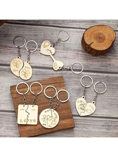 2pcs/Set Couples Matching Keychain Creative Wooden Key Chain Ring Birthday Valentine'S Day Gift For Him Her Girlfriend Boyfriend - Khaki - View 14