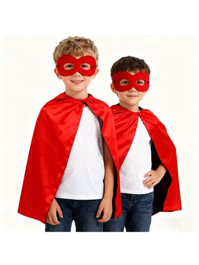 2pcs/Set Kids Superhero Costume Set, Includes Cape And Mask, Halloween Costume Set, Reversible Black & Red, Unisex, Roleplay Costume, Carnival Party Outfit, Children Dress Up Toy, Suitable As Birthday Gift, Holiday Gift, Halloween Gift, Christmas Gift - Red - View 1