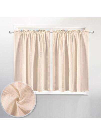 2pcs/Set Light Pink Waffle Weave Semi-Sheer Window Curtains. Waterproof Bathroom Window Curtains, Suitable For Cafe And Kitchen - Baby Pink - View 6