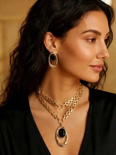 2pcs Set New Creative Minimalist Middle Eastern Festival Double-Layer Stacked Fashion Casual Exaggerated Metallic Jewelry Set, Suitable For Party, Vacation, Street Style, Hip-Hop - Yellow Gold - View 1