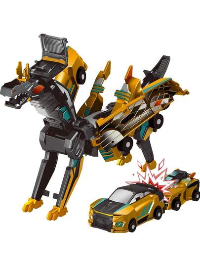 2pcs/Set Transforming Gold & Silver Dragon Cars, Dinosaur Cars Toys Suitable For Teenagers, Halloween, Christmas, Birthday Gifts - Multicolor - View 1