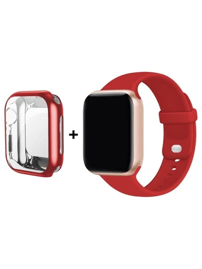 1pc Silicone Watchband & 1pc Case Compatible With Apple Watch - Red - View 1