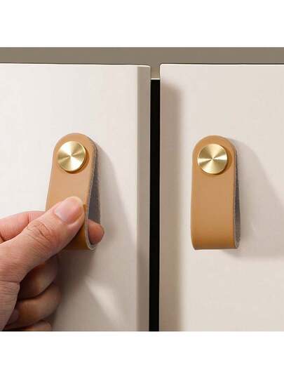 2pcs Synthetic Leather Cabinet Drawer Handles, American Modern Furniture Door Knobs, Kitchen/Dresser/Kids Room Drawer Pulls - Coffee Brown - View 1