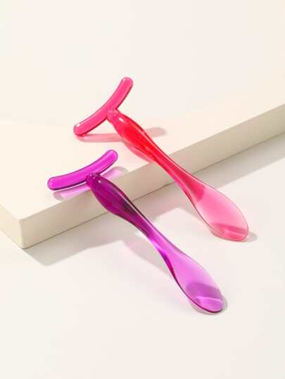 Eye Massage Stick, 2pcs Cute Solid Color T- Shape Used With Essential Oil Plastic Face Massager For Women Face & Eyes - Multicolor - View 1