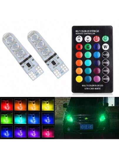 2pcs T10 Waterproof W5w 501 Car Wedge Side Light Bulb-6SMD 5050 RGB 7 Color LED Remote Control (NO Battery)Strobe Flash Wedge Lamp - 2pcs - View 1