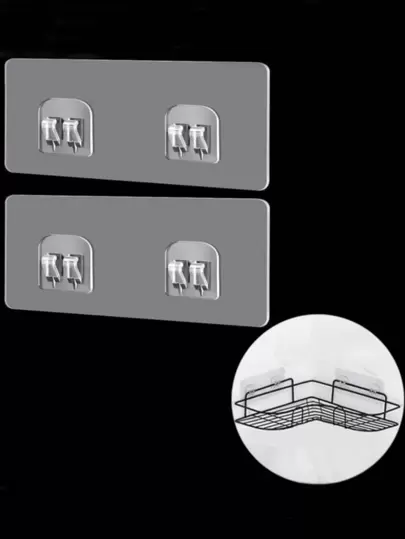2pcs Wall Mounted Storage Rack Support, Clear Plastic Buckle, For Home - Clear - View 1