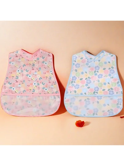 2pcs Waterproof Baby Bibs - Double-Layer Waterproof Design For Children's Feeding, Washing, Playing, Painting, Etc., Reversible Pocket Design With Strong Debris Containment Ability, Button Design, Two Sizes Adjustable, Waterproof, Machine Washable, Soft, Stain-Resistant, Odor-Resistant, Suitable For 6-36 Months Old Baby - The Best Holiday Gift, The Best Choice For New Parents - Multicolor - View 1