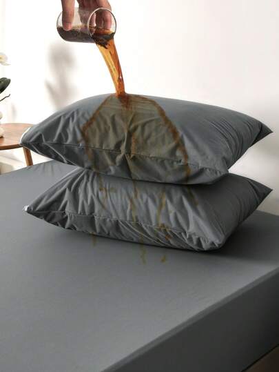 2pcs Waterproof Pad Set (2-Piece) - Made Of Breathable TPU With Low Allergen: 2 Packs Zipper Pillow Protectors' - Dark Grey - View 1