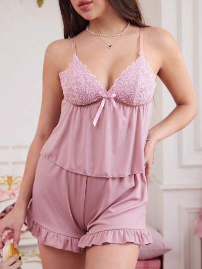SweetSlumber 2pcs Women Sexy Spaghetti Strap Shorts Pajama Set - Dusty Pink - View 1