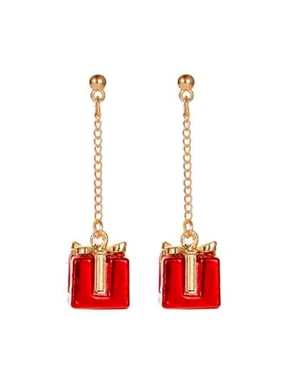 2pcs Women's Christmas Style Gift Box Party Decoration Earrings - Red - View 1