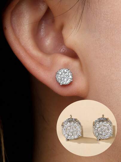 2pcs Women's Full Zirconia Stud Earrings, Suitable For Couples - Earring - View 1
