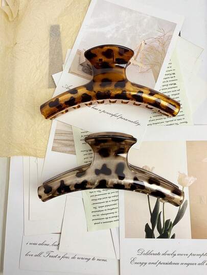 2pcs Women's Leopard Print Hair Clips, New Fashionable Vintage Leopard Pattern Large Hair Claws, Versatile Elegant Hair Accessories - Multicolor - View 1