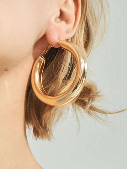 2pcs/set Thick Circle Hip-hop Rock Earrings - Yellow Gold - View 1