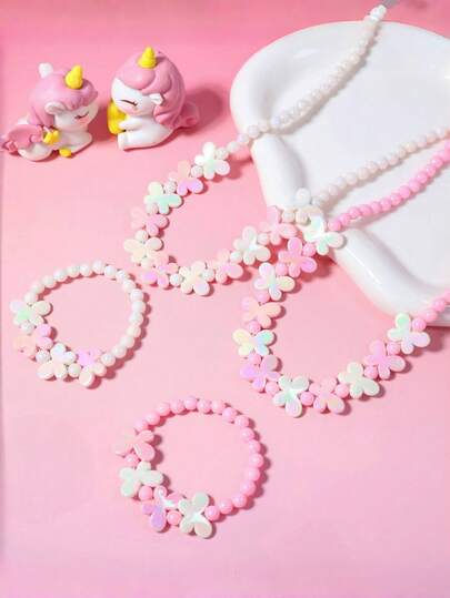 2pcs/Set Girls Butterfly Beaded Bracelet And Necklace Jewelry Set, Attractive Gift For Girls Birthday Holiday - one-size - View 1