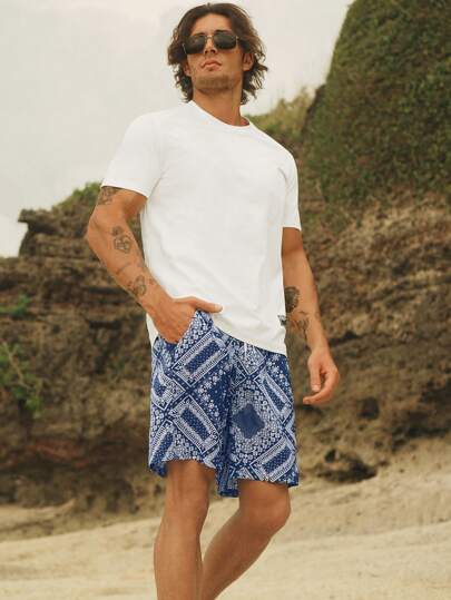 Manfinity VCAY 2pcs/Set Men's Knitted Slim Fit Round Neck Casual T-Shirt Set, Suitable For Summer - White - View 1