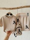 SHEIN 2pcs/Set Young Boys' Street Style Round Neck Short Sleeve T-Shirt + Shorts, Summer Getaway, Holiday, Travel, Relax, Sunbathing