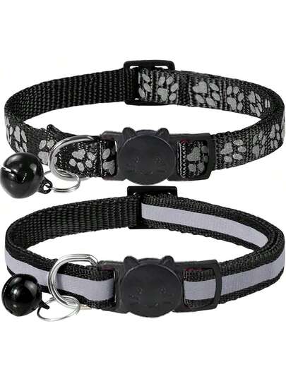 2pcs/set Adjustable Reflective Black Cat Collar - Black - View 1