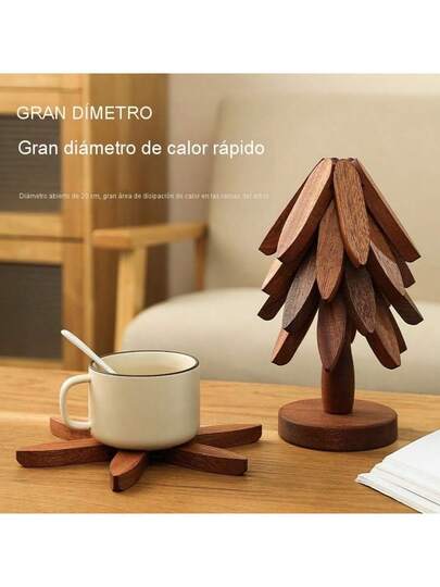 3/4/5pcs Wooden Heat Insulation Pad Set, Foldable Tree-Shaped Black Walnut Wood Placemat Holder, Heat Resistant Placemats & Coasters Set, Wooden Tableware Mats, Christmas Gift - Multicolor - View 13