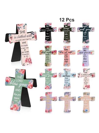 3/6/12pcs Magnetic Cross Bookmarks, Suitable For Bible Study, Readers, Teachers, And Students - Cute Magnetic Cross Bookmarks With Inspirational Quotes, Suitable For Female School Reading, School Reading Aids, Inspirational Gifts, Cross Shaped Bookmarks, Inspirational Bookmarks, Symbolic Bookmarks, Cute Cross Design, High-Quality Printing, Teacher's Day Gifts (Mixed Shipping Of Multiple Styles) - Multicolor - View 9
