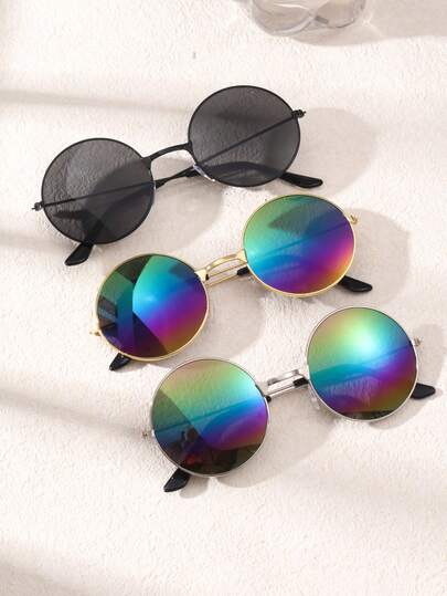 3 Packs Kids' Gold Rim Black Frame Metal Glasses Hypoallergenic Lightweight Eyewear For School, Costume Parties & Holiday Gifts - Multicolor - View 1