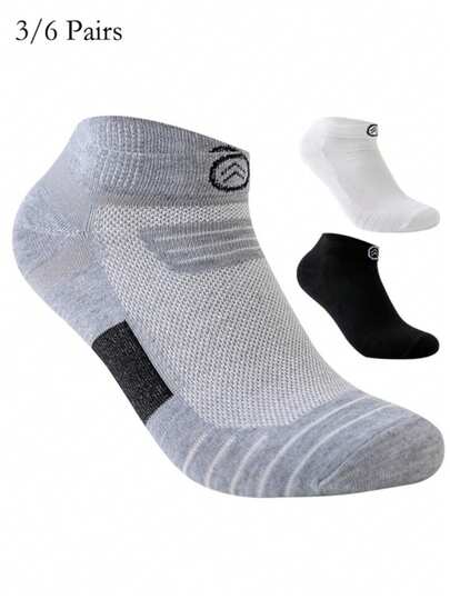 3 Pairs/6 Pairs Men's Professional Sports Socks, Spring/Summer Breathable Mesh Short Socks Suitable For Running, Basketball, Outdoor Sports, Thickened Terry Sole In White, Gray, Black - Multicolor - View 1