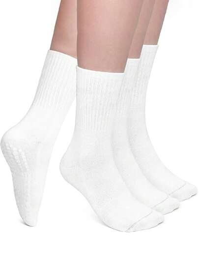 3 Pairs Pilates Non-Slip Socks, Women Pilates Sticky Socks, Yoga Grip Socks With Traction, White, For Gym, Fall - White - View 1