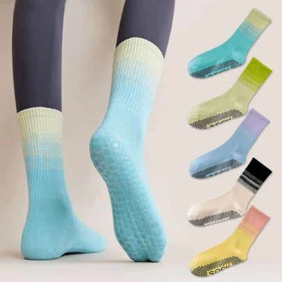 3 Pairs Women Yoga Socks, Mid-Calf Sports Socks, Gradient Color Anti-Slip Colorful Durable Dot Grip Fitness Socks - Multicolor - View 1