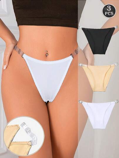 3-Piece Set: Solid Color Sporty - Comfortable Ultra-Minimalist Nylon Waistbands And Thong - Multicolor - View 3