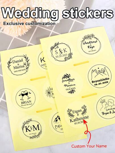 30-480pcs Customizable Removable Waterproof Transparent Stickers Set, Can Customize Wedding Date/Name/Company LOGO, Vinyl Material + Groom Proposal Box/Bridesmaid Favor/Bachelor Party Decor 3-In-1, Business Card Stickers+Bottle Labels 3 Scenarios, Easter Egg Sticker/Graduation Season Souvenir/Birthday Party Decoration Stickers,School Supplies,Back To School - Transparent Material (black Font) - View 8