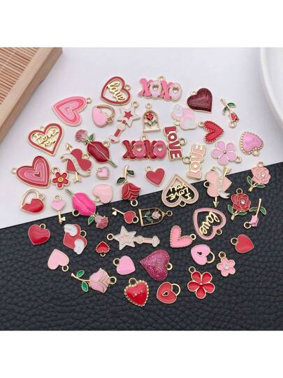 30/50pcs Fashion Enamel Lovely Heart-Shaped Valentine's Day Rose Plated Gold Pendant For DIY Necklace Bracelet Earrings Women Jewelry Making Accessories - Red - View 8
