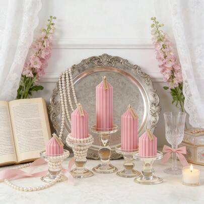 30-Hour Burning Sweet Pink Pillar Scented Candle, Made Of Soy Wax And Paraffin Wax, Suitable For Wedding Party Centerpiece Decor, Girlfriend Gifts, Ladies' Gifts, Ramadan And Eid Al-Fitr Decoration, Home And Room Decor - Pink Pointed Candle - View 15