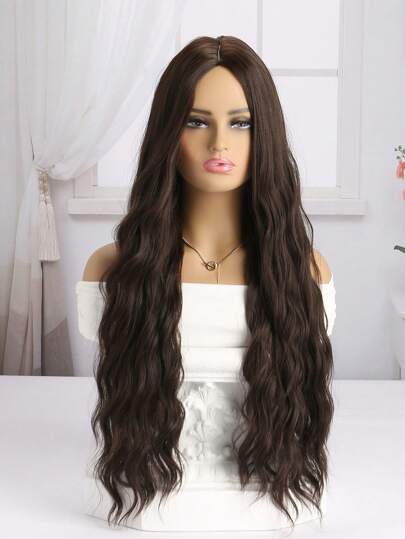 30 Inch Women's Synthetic Fiber Synthetic Hair Wig In Natural Deep Brown Water Wave Curls, Suitable For Daily Wear - Dark Brown - View 1