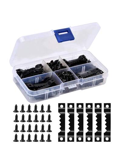 300 Pcs Picture Hooks For Hard Walls, Picture Frame Fixings, Kits Come With Sawtooth Hangers And Screws, Fit For Fixing Photo Frames Signs Wall Clocks Painting Craft - Black - View 1