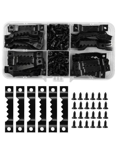 300pcs Picture Hanging Kit, Picture Hooks For Hard Walls, Picture Frame Fixings, Kits Come With Sawtooth Hangers And Screws, Fit For Fixing Photo Frames Signs Wall Clocks Painting Craft, With Box - Black - View 1