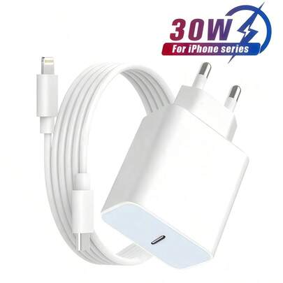 30W USB-C Fast Charging Adapter, EU Plug Charger With 3.3FT/6.6FT USB-C To Lightning Cable Charging Set, Compatible With IPhone 14 13 12 11 Pro Max Plus - EU C Type Plug(220-240V) - View 1