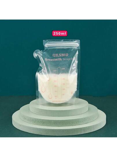 30pcs 250ml Breast Milk Storage Bag With Funnel Spout & Double Zipper Seal For Refrigeration - White - View 1