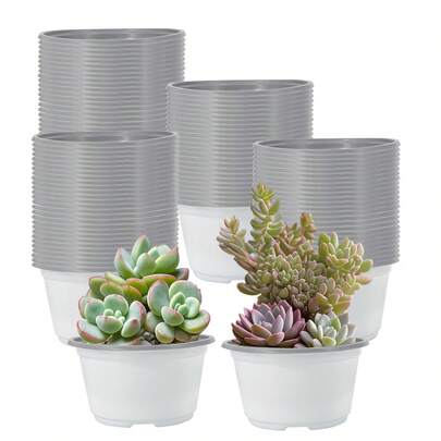 30pcs 4.7 Inch (Approx. 12cm) Plastic Succulent Planter Pots, With Drainage Holes, Suitable For Succulents, Pothos, Cacti And Other Small Plants/Flowers, White - White - View 1