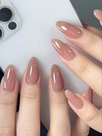 30pcs Nude Almond-Shaped Press-On Nails, Fashionable & Elegant False Nails Suitable For Women, Parties, Daily Wear, Easy To Apply & Reusable, Includes Jelly Gel & Nail File - Dusty Pink - View 1