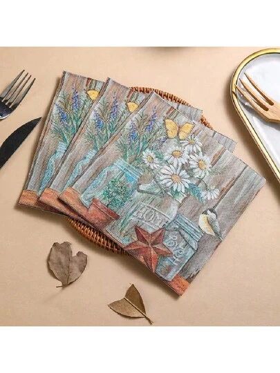 30pcs/Pack Retro Floral Printed Square Disposable Napkins - Multicolor - View 5