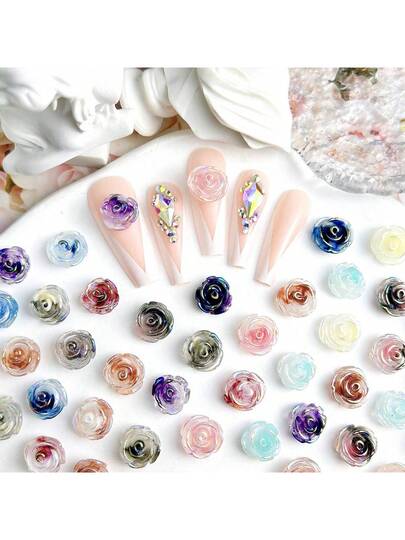 30pcs Random Mixed Gradient Rose Shaped Diy Nail Art Decorations - Multicolor - View 1