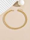 Uworld 1pc Vintage Minimalist Oval Chain Necklace Daily Jewelry 18K Gold Plated Stainless Steel Chain Necklaces Choker Women Stacking Daily Wearing