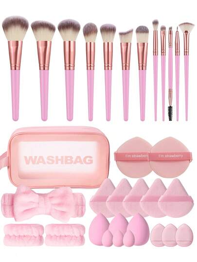 32PCS Makeup Tools Set Including:12PCS Makeup Brush Set+1pc Multi-Functional Zipper Toiletry And Cosmetic Bag Waterproof+2PCS Circular Powder Puffs+1pc Hairband+5PCS Triangle Powder Puffs+2PCS Hand Bowl Strap+3PCS Makeup Sponges+3PCS Mini Makeup Sponges+3PCS Mini Air Cushion Powder Puffs - Multicolor - View 1